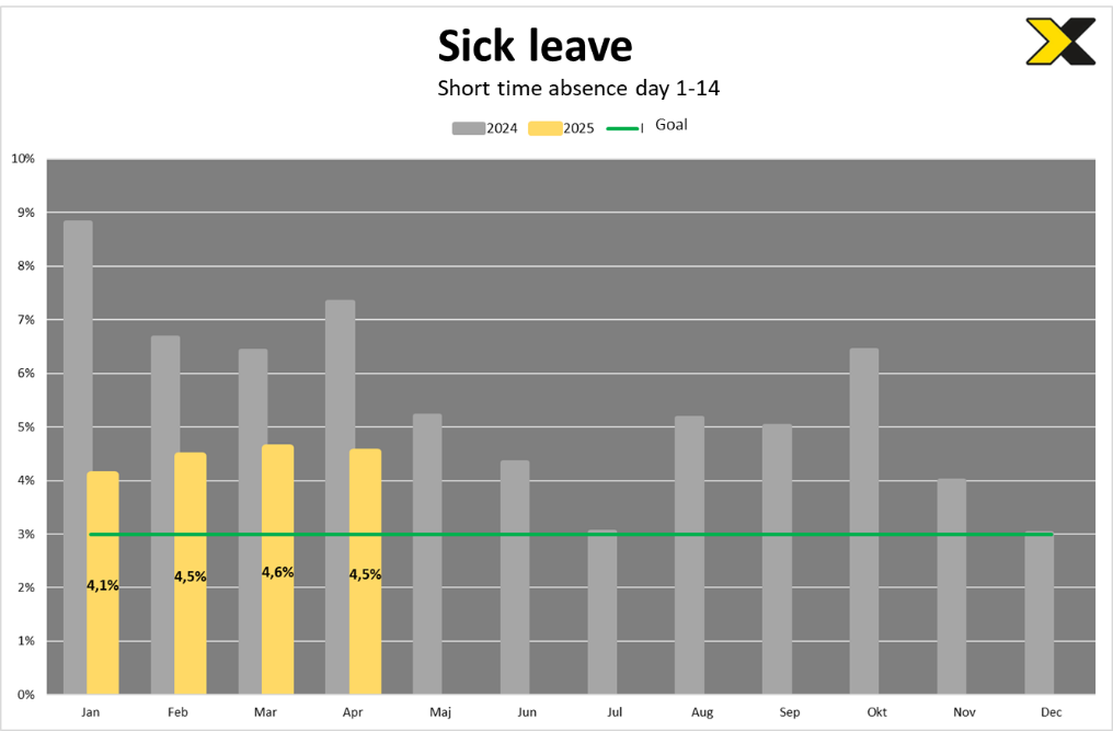 • Sick leave decreased and showed a positive trend throughout 2025 compared to 2024.